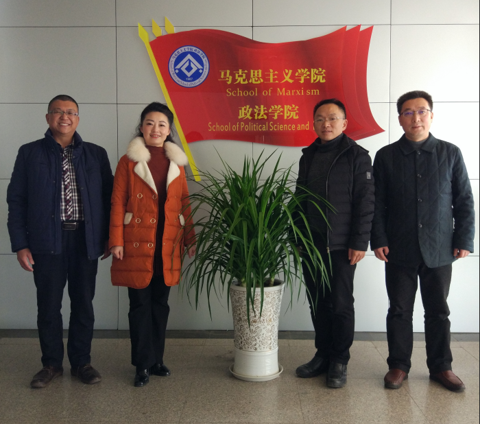 王秀珍首先对邓院长一行表示热烈欢迎,她简要介绍了马克思主义学院的沿革,学院师资队伍建设、思政课X+1改革以及在线考试等内容。她说,天下马院是一家,我去年带领了马克思主义学院教研室主任、部分专任教师集体到内江师院学习交流,在今年评估前夕又再次到访,邓院长热情接待、毫无保留的把自己在学院建设、管理等方面的好做法、好经验向我们作了详细介绍,很受启发。这次两位党政主要领导亲自带队来taptap点点交流,进一步加深了两个学院的交流和友谊。邓小明还就刚刚接受教育部本科教学审核评估工作情况作了介绍。双方表示,以后在思政课教学改革、师资队伍建设等方面多交流、多合作,共同把马克思主义学院建设好,建出成效。
