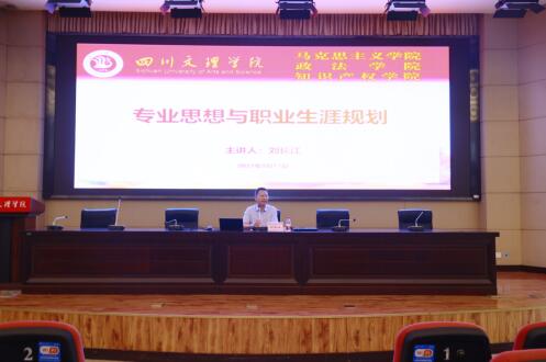 学院院长刘长江作《专业思想与职业生涯规划》讲座。“学院总共有多少个二级学院?”刘院长以这个问题引出本次讲座内容,并向同学们介绍学校的校情和学院的专业情况,他对同学们进行职业生涯规划教育,引导学生树立远大理想、树立好正确的三观,合理规划大学学习,准确定位,规划人生,提高自身竞争能力,为学生的成长成才指明奋斗方向。