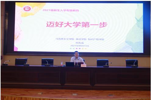 大学第一步,该如何迈好?拥抱大学新生活,大学生如何遇到更好的自己?副院长何先成作《迈好大学第一步》讲座,从学业发展、人际交往、心理调适、生涯规划等角度为学院大一新生提供针对性、可操作性的“大学生活攻略”。他希望同学们坚定信心,找到属于自己的学习密码,做有志气、有骨气、有底气的青年人,奋斗出精彩无悔的大学生活。