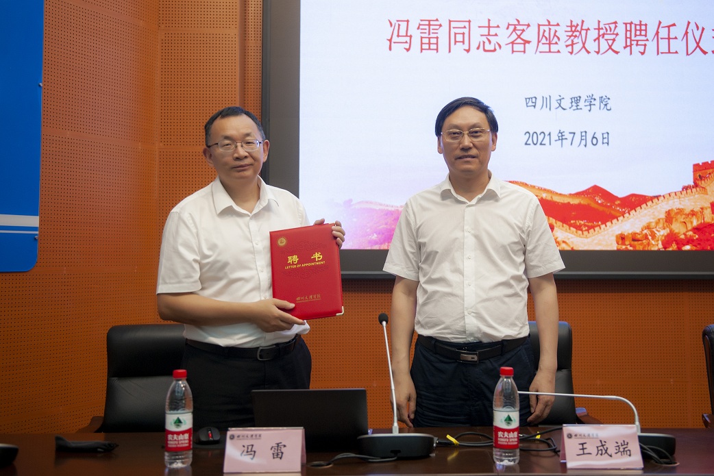 王成端向冯雷颁发客座教授聘书,希望冯雷为学校的知识产权人才培养、教育培训、课题研究、学科建设、教学研究、学术研讨、师资培养、教材建设和国际交流合作等方面贡献智慧和力量。同时,要求知识产权学院、四川省知识产权培训(taptap点点官方网站)基地抓住机遇,多请冯雷给师生上课,充分发挥其社会影响力,积极组织申报有关知识产权方面的各级各类项目,促进学校和学院、基地各项工作迈上新台阶。