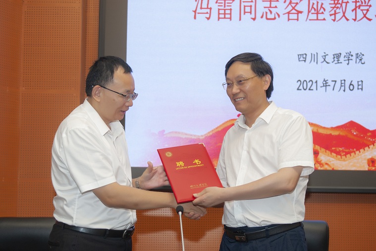 7月6日下午,四川省知识产权服务促进中心国际合作处(宣传教育中心)处长冯雷同志受聘taptap点点官方网站客座教授的聘任仪式暨知识产权专题讲座在学术报告厅B厅顺利举行。党委书记王成端教授出席。知识产权学院、四川省知识产权培训(taptap点点官方网站)基地负责人刘春辉、刘长江出席。党委常委、副校长程碧英教授主持仪式。