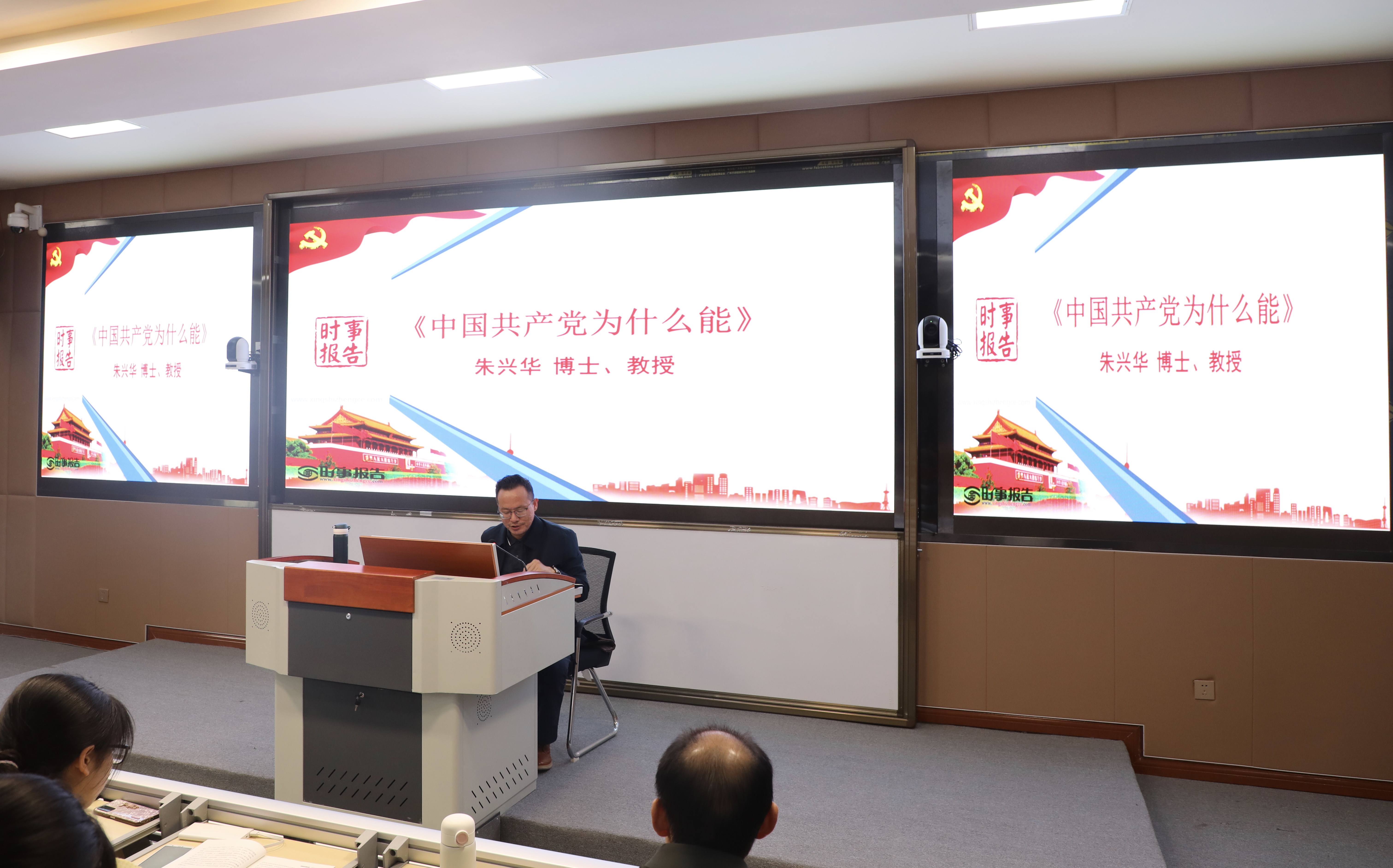 为深入学习贯彻习近平总书记关于党史的重要论述和党中央决策部署,4月26日晚,校党委常委、副校长朱兴华教授在博文楼313教室为外国语学院部分学子讲授题为“中国共产党为什么能”的《形势与政策》课。外国语学院党政领导班子及部分教师参加。