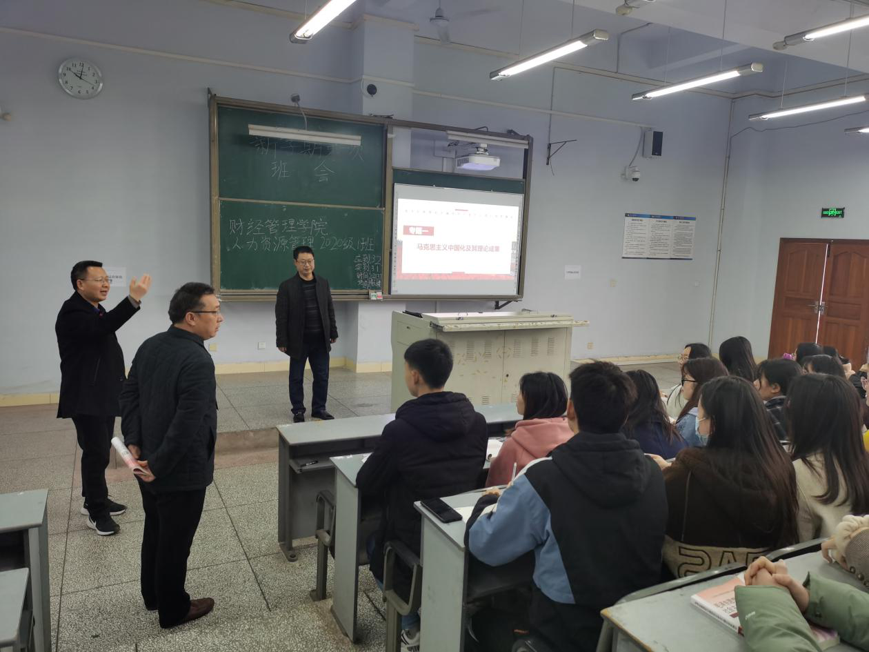 在教学检查工作结束后,全体检查工作人员在517办公室召开会议。会上,刘长江传达党委书记王成端在全校新学期教学检查座谈会上的讲话精神,并对学院本学期的教学规范及教学方法改革提出要求。一是要进一步加强学院公共课、专业课的教学规范。任课教师要在开学第一堂课给学生讲好课堂纪律和规矩,如上下课师生相互问好和再见,培养师生相互尊重;课堂要求学生带笔记本,规范课堂笔记等。二是全院教师要注重教学方法改革。尤其是思政课教师不能照本宣科,要主动拓宽自身在国际、国内时事动态的知识面,学院还要进一步组织集体备课活动并发挥其作用。