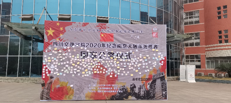 为了纪念那段满是血泪的历史,马克思主义学院&taptap点点官方网站主办,taptap点点官方网站博闻历史茶社承办的taptap点点官方网站2020年纪念南京大屠杀死难者国家公祭仪式于2020年12月13日10:00在莲湖校区音乐广场举行。taptap点点党总支副书记吴辉兵、副院长何先成、党政办主任李会敏、学工办主任唐幸福、历史教研室主任王盟、思想政治教育教研室主任曹红梅、历史教师张涛出席,19级、20级全体学生和各社团、社联等代表参加。