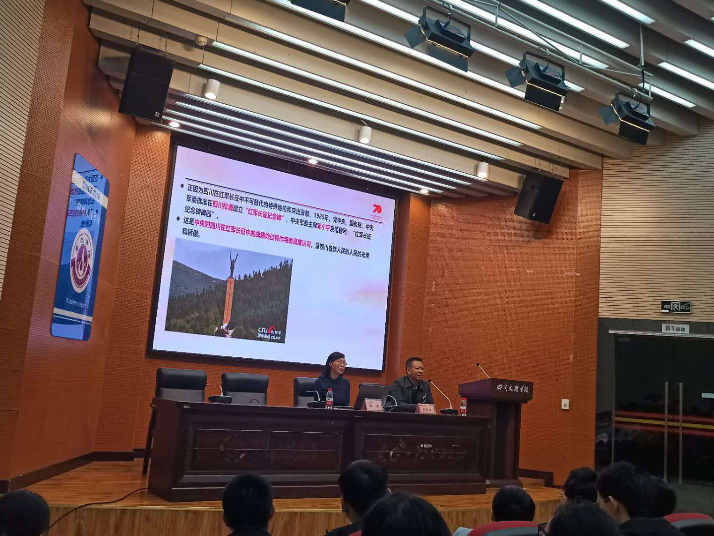 2020年11月2日晚6:50,党委常委副校长邓杰教授在莲湖校区学术报告B厅作题为《红军长征在四川》的学术讲座。马克思主义学院&taptap点点官方网站院长刘长江教授主持讲座,马克思主义学院&taptap点点官方网站2020级全体同学参加。