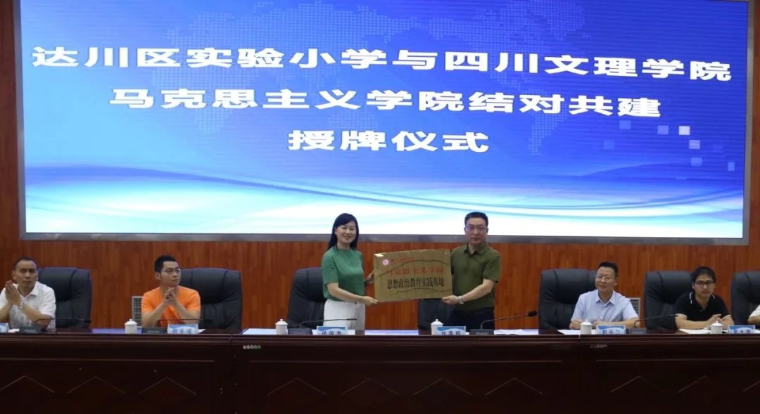 6月29日上午,学院党总支书记刘春辉,党总支副书记、院长刘长江一行10人赴达川区实验小学杨柳校区,与对方党组织共同开展交流联谊活动,共庆党的99岁生日,并与达川区实验小学举行“思想政治教育实践基地”签约暨授牌仪式。