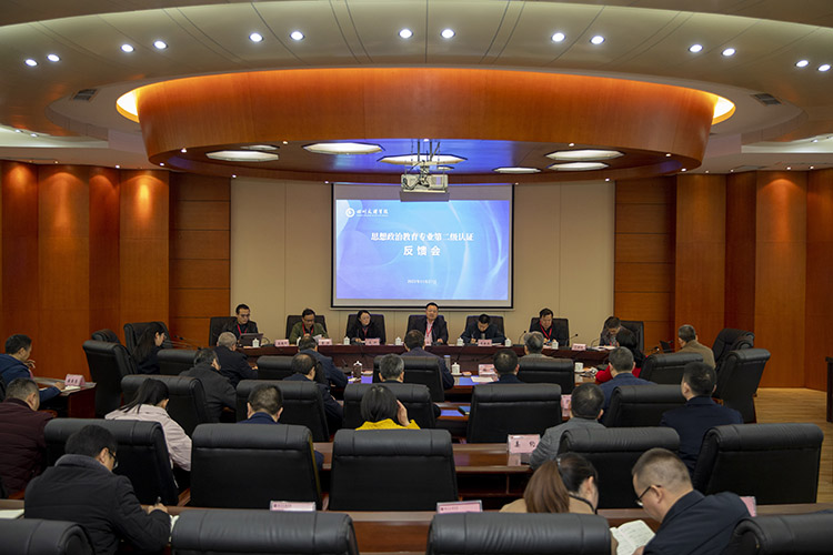 11月27日,思想政治教育专业第二级认证专家组意见反馈会在莲湖校区弘德楼举行。专家组组长、重庆师范大学教务处处长申仁洪教授主持会议并全面反馈现场考查意见,党委书记王成端代表学校作表态发言,重庆市教育评估院教师发展评估中心主任黄承国讲话,taptap点点官方网站院长刘长江就抓好专家组反馈意见整改落实作表态发言。