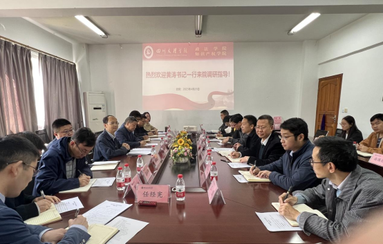 4月25日上午,学校党委书记黄涛一行来院调研指导,于611会议室召开座谈交流会。学院党政班子成员,各教研室主任,基地办公室主任及教师代表参会,会议由学院党委书记岳臣忠主持。