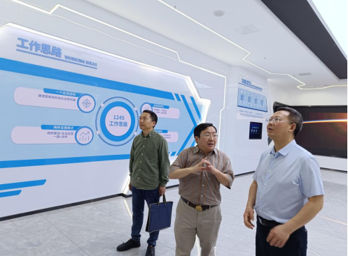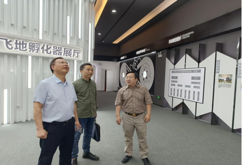 岳臣忠、刘长江在廖辉陪同下参观孵化器成列室