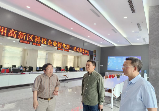 岳臣忠、刘长江在廖辉陪同下参观孵化器一站式服务中心