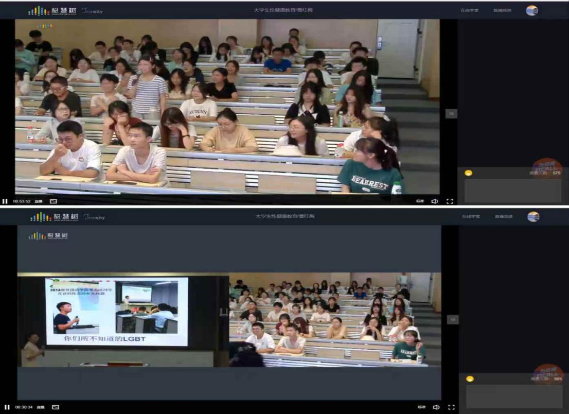课堂中,曹老师利用智慧树平台的签到、头脑风暴等工具与线上线下的同学们进行充分互动,同学们在老师设置的案例和问题引导下,围绕性的内涵、特征、存在形式和功能等方面脑洞大开,积极参与课堂讨论、踊跃发言,整个过程流畅稳定,课堂气氛活跃融洽,取得了良好的教学效果。后台数据显示,本次线上观看课程的本校学生达600余人次。