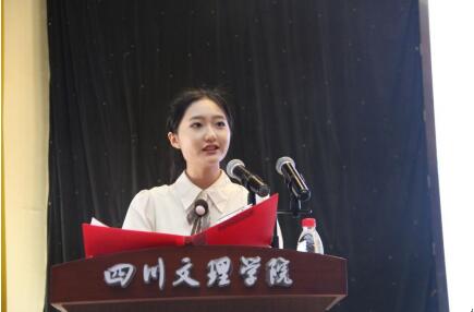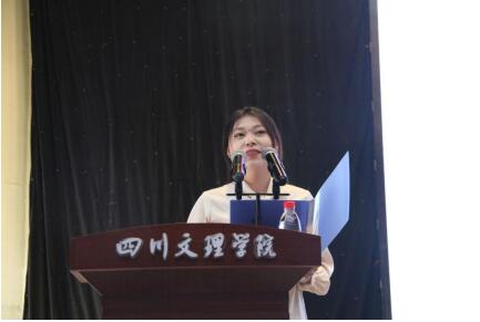 新生代表王笑寒发言,她表示将转变角色,适应大学生活;珍惜时光,刻苦学习;勇于探索,开拓创新,争做新时代优秀大学生。