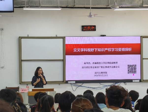 2024年5月23日下午,西南科技大学法学院副教授、四川省法学会知识产权法学研究会副会长冉庆华博士应邀来校做“交叉学科视野下知识产权学习要领探析”专题学术报告。学院党委书记岳臣忠主持报告会,法学教研室教师,2022、2023级知识产权专业学生到场聆听。