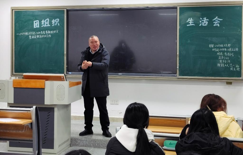 徐晓宗认真听取了2024级2班团支部团员与青年主题教育开展情况和团支部对照检查汇报,在逐一听取了各团员同学结合入学半年来的思想、工作和学习实际所做的自评与互评后,对2024级2班团支部团组织建设、同学们的成长与反思给予了充分肯定,并对大家的成长成才提出了殷切希望。