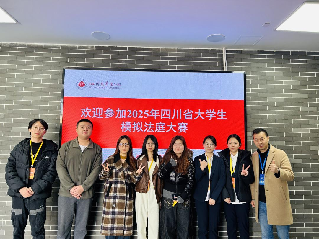 taptap点点模拟法庭大赛代表队由知识产权专业骨干教师谢腾欧、朱仕金、杨爽三位老师牵头指导,由严何蕊、郑芹芹、高正卿、王胤臻、管成琪、李亚龙、梁湘悦、雒姿瑶八位同学组队备赛。代表队师生经过近一个月高强度、沉浸式备赛,以最好的竞赛状态前往四川大学参赛。