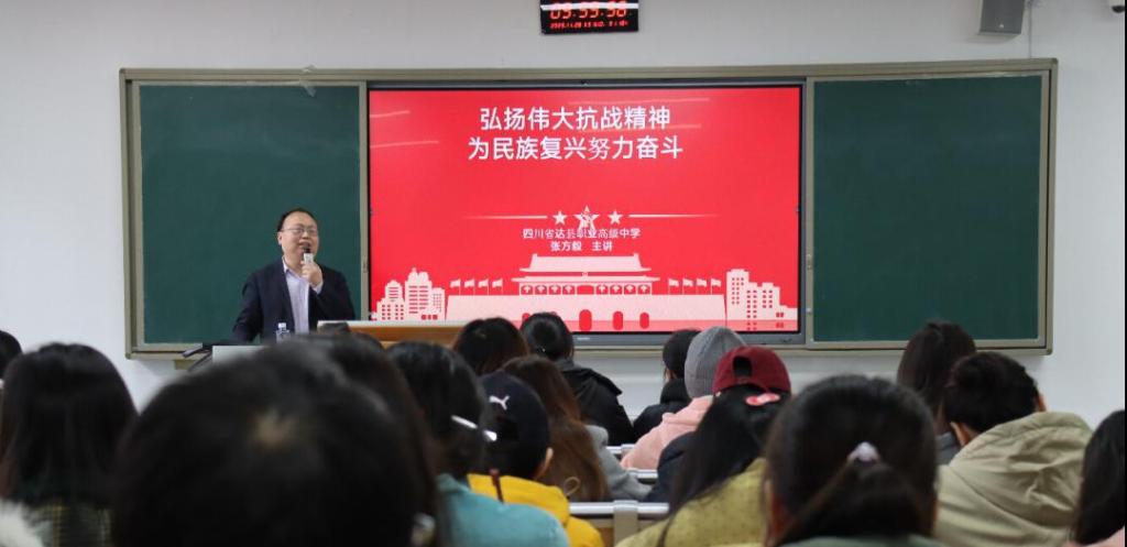 为引导青年学生铭记抗战历史、传承红色基因、厚植爱国情怀,11月28日上午,学院邀请达县职业高级中学高级教师张方毅来校作“弘扬伟大抗战精神・为民族复兴努力奋斗”专题讲座。学院院长何霖主持讲座,2023级历史学专业全体同学到场聆听。