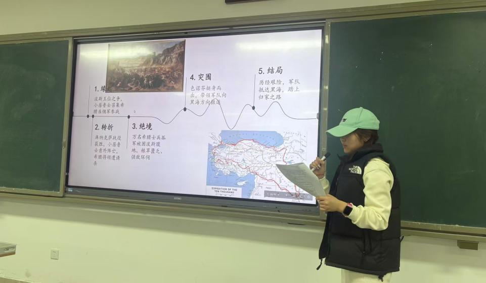 本次分享会打破了传统课堂讲授模式,将“阅读-梳理-分享-互动”融为一体,构建起沉浸式、参与式的学习场景,是世界古代史课程深化实践教学的一次创新探索。一方面实现了阅读分享的“精准化”与“个性化”,五位同学选取的书籍涵盖绝境抗争、经济视角、通史框架、文明兴衰等多个维度,既兼顾经典著作与特色书目,又贴合个人研究兴趣,让分享内容各有侧重、互不重叠;另一方面构建了“学生主体、教师引导”的实践教学新模式,从分享者的精心筹备、主持人的流程把控,到同学们的互动交流,均以学生为核心,教师全程参与并在尾声进行专业点评,既保障了活动的自主性,又确保了学习的专业性。此外,PPT展示的形式将抽象的历史知识转化为直观的图文内容,有效降低了历史知识的理解门槛,提升了学习效率与分享效果。