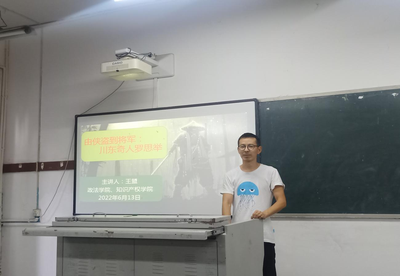 6月13日晚19点,王盟副教授在南坝校区210教室为化学化工学院学子作了题为“由侠盗到将军:川东奇人罗思举”的专题学术讲座。