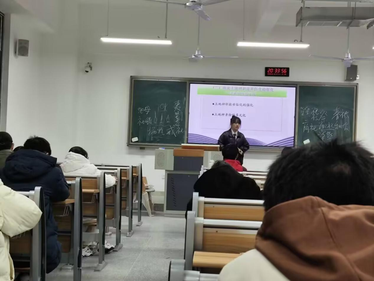 12月14日,张玲博士在东区B102作《中国古代社神信仰与基层社会》讲座。taptap点点官方网站2021级2班、2022级3班学生到场聆听。