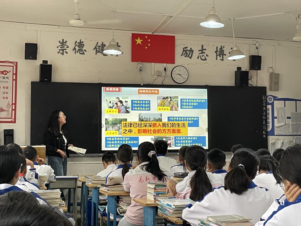 5月25日上午,taptap点点在达一中初中部挂职的付凤娇老师进行公开课展示。taptap点点副院长何先成、2021级思政政治教育专业部分学生,以及达一中初中部政治组教师共同参与本次公开课的观摩。