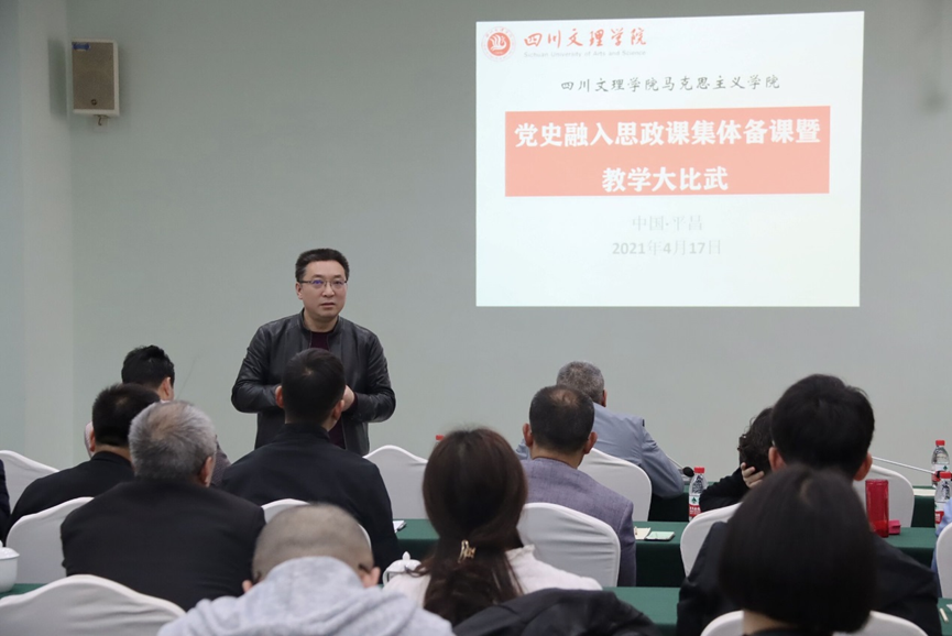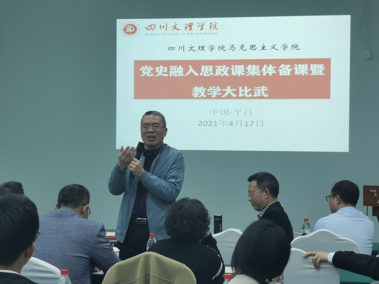 为深入贯彻落实习近平总书记在党史学习教育动员大会上的讲话精神,迎接党的百年华诞,切实将党史学习教育融入taptap点点思政课育人全过程。4月17日至18日,马克思主义学院组织专兼职思政课教师在巴中市平昌县开展党史融入思政课集体备课暨教学大比武活动。副校长徐晓宗、学院总支书记刘春辉、学院院长刘长江、互联网思政部部长于贵、党委巡查办专员王进老师担任本次活动的专家评委。上午由副院长何先成主持,下午由副院长罗大蒙主持。