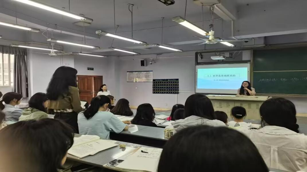 上午10时,王莉老师在博文楼227教室又给同学们带来了《世界是普遍联系的》《世界是永恒发展的》两堂精彩的高中课堂教学,同学们仿佛又回到了高中课堂,感受着议题式教学的魅力,体会议题式教学的开展与实施,感悟议题式教学在培养中学生学科核心素养方面的实际效果。