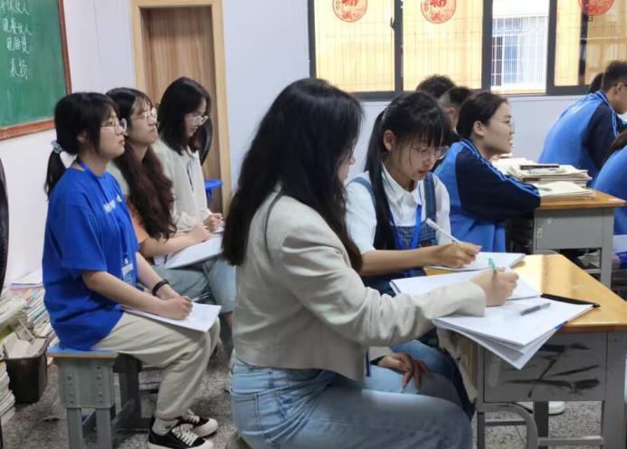 见习期间,同学们深入中学一线课堂观摩学习,深入了解见习学校的教学理念和教学方法,全面学习课堂教学的组织、实施、评价等过程。在参与课堂教学过程中,根据教学目标和学生实际情况,选择适合的教法、学法,整合教学资源,学习教学经验,运用所学知识和技能尝试开展教学实践。