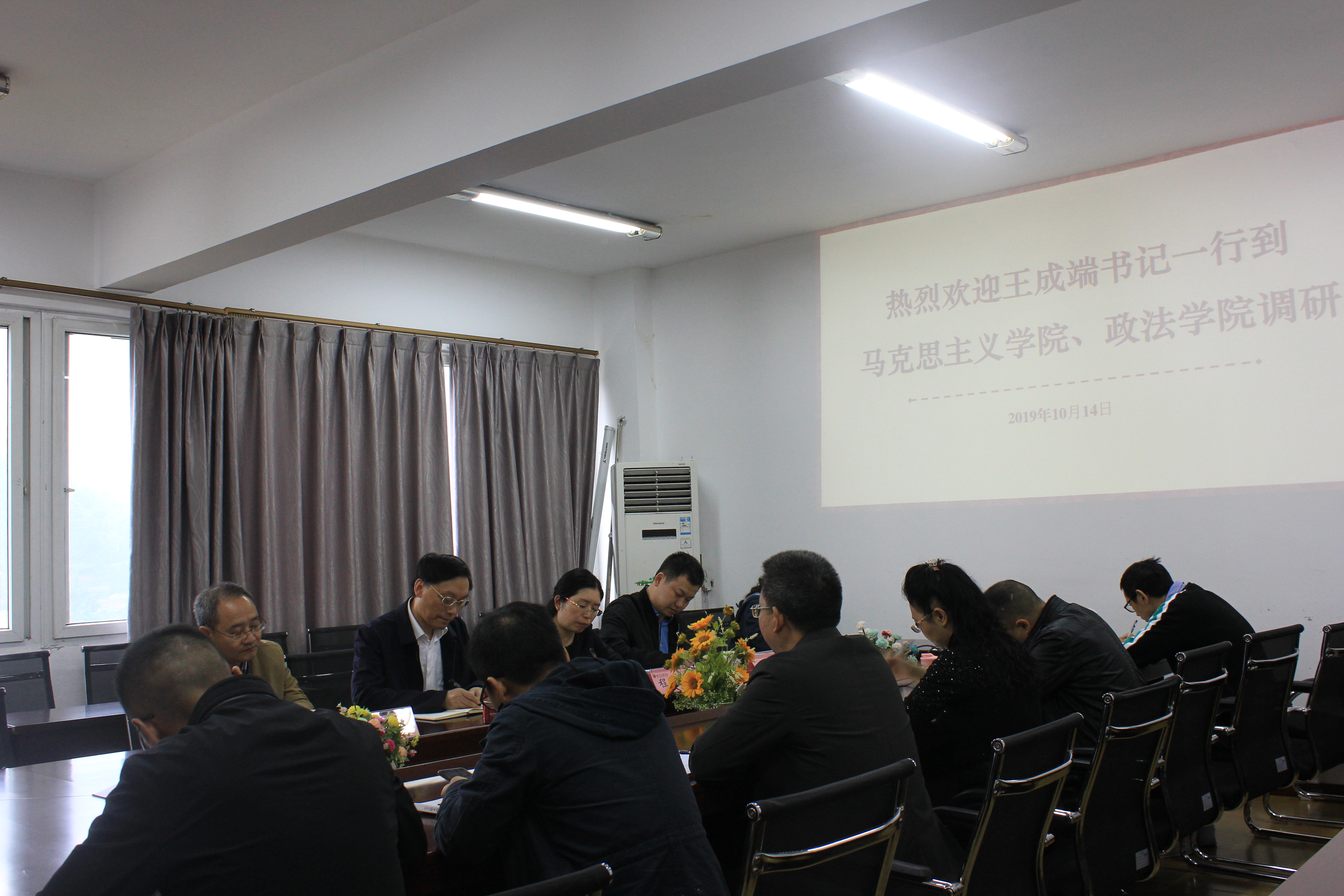 为了深入了解“不忘初心 牢记使命”主题教育开展情况和“四圆同心”办学思路执行情况,2019年10月14日上午,学校党委书记王成端、宣传部部长余文盛、学校党政办主任陈官章、教务处处长程碧英等一行6人来taptap点点调研。