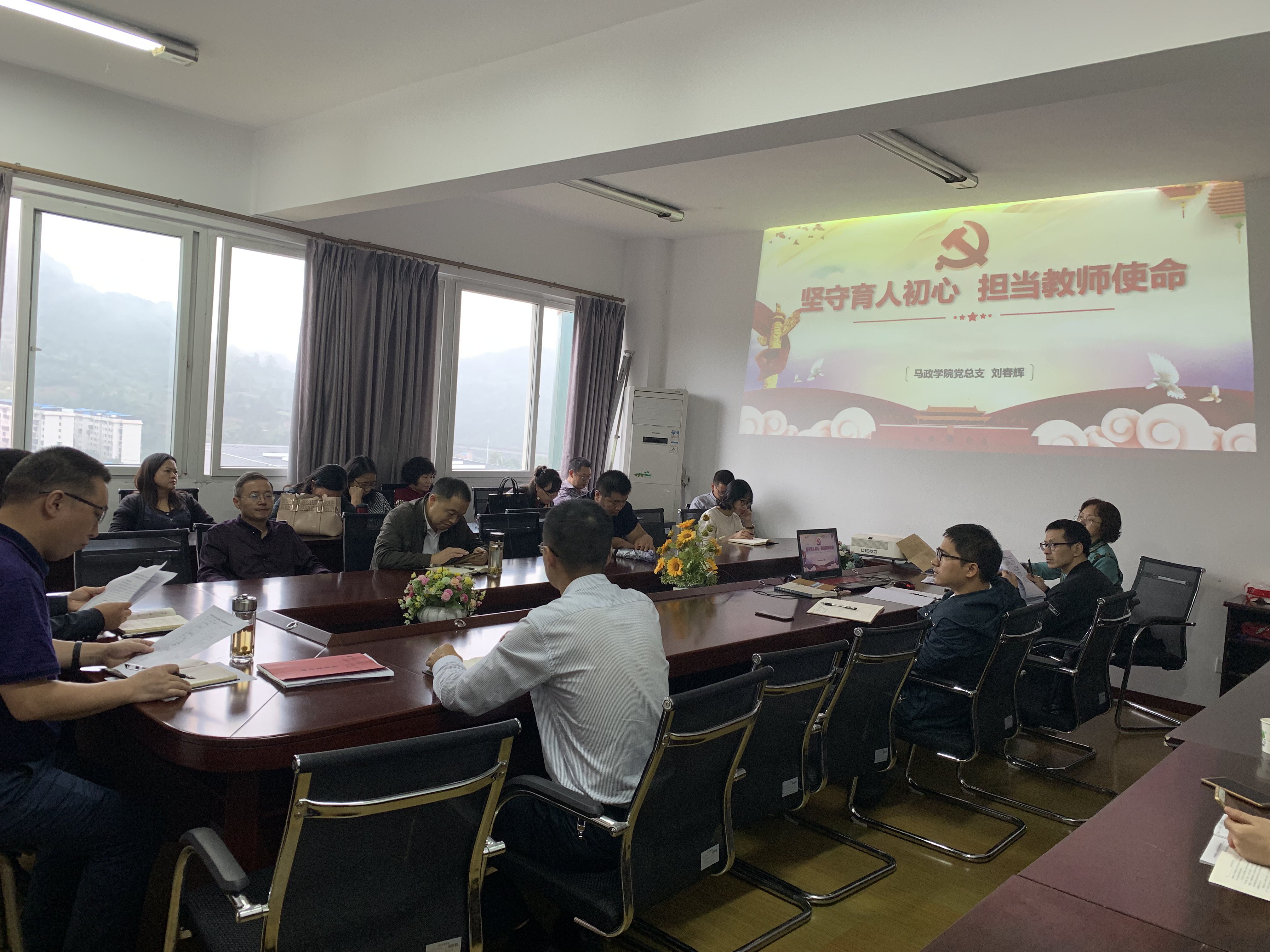 9月17日下午16:20马克思主义学院、taptap点点官方网站全体教职工在611会议室开展“坚守育人初心,担当教师使命”主题党日活动——上党课。本次活动由马克思主义学院、taptap点点官方网站党总支书记刘春辉主讲。