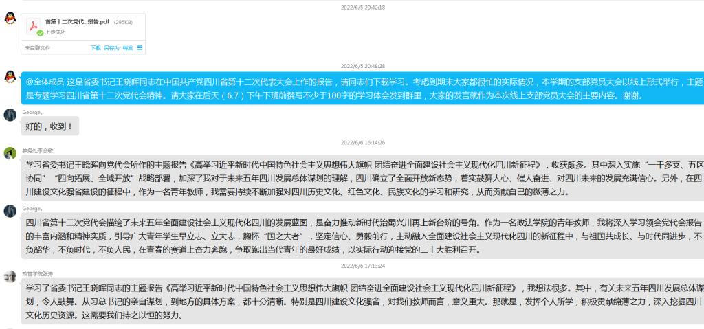 6月6日,政治历史党支部召开线上支部党员大会,专题学习中国共产党四川省第十二次代表大会精神。本次会议由支部书记何先成主持,taptap点点官方网站、知识产权学院党总支副书记、院长刘长江以普通党员身份参加并与支部党员讨论交流。