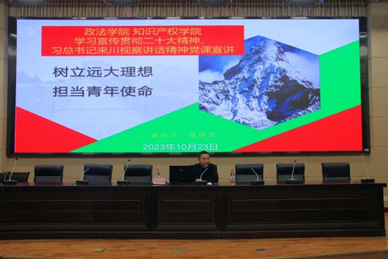 学院党委书记岳臣忠以“树立远大理想 担当青年使命”为题,为新生开展入党启蒙教育。他阐释了理想信念的概念和特征,并以革命前辈、英雄模范和时代楷模的人生理想为例分析了远大理想的重大意义,号召同学们树立共产主义远大理想,树立对马克思主义的信仰、对中国特色社会主义的信念、对中华民族伟大复兴中国梦的信心。他结合俄乌冲突和巴以冲突的国际时事教育同学们要珍惜当下的美好生活,勤奋学习,练就过硬本领,努力成长为堪当民族复兴重任的时代新人。他用我国第一颗原子弹爆炸成功的事例勉励大家要立足实践奋斗,担当以中国式现代化推进中华民族伟大复兴的使命任务,投身于中国式现代化建设中去,让青春在火热实践中绽放绚丽之花。他寄语全体同学既要怀抱梦想又要脚踏实地,既要敢想敢为又要善作善成,努力成为有理想、敢担当、能吃苦、肯奋斗的新时代好青年。