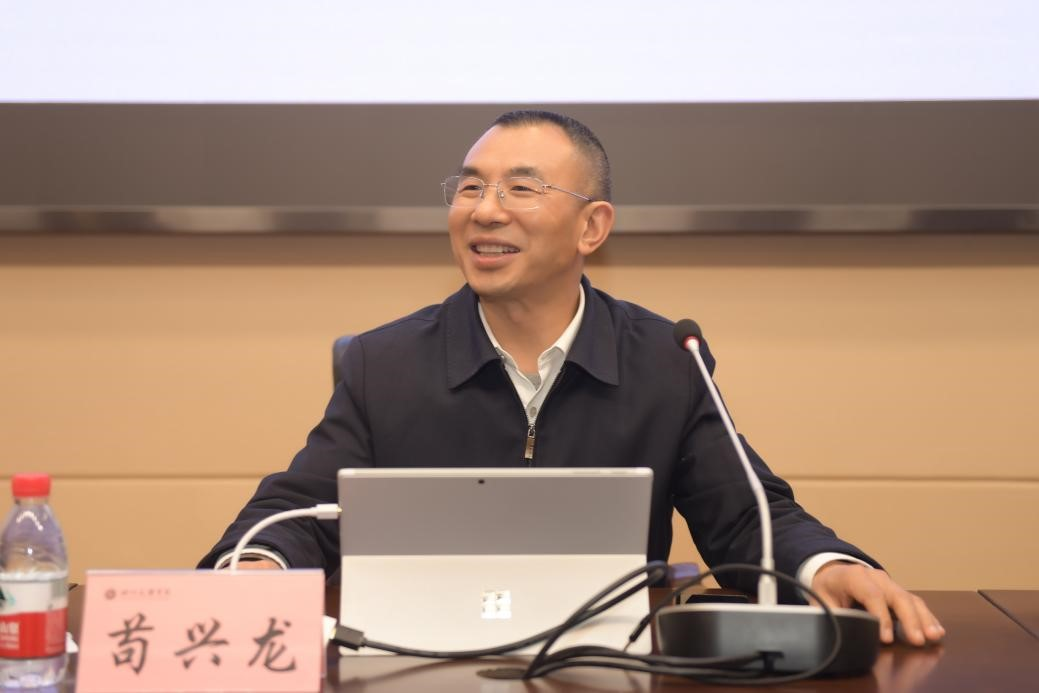 苟兴龙副校长以《认真学习贯彻两会精神,在中国式现代化建设中挺鹰担当》为题,围绕“大会基本情况、重要讲话精神、大会重要成果和个人履职情况”四个方面进行宣讲,深入传达两会精神内涵,对习近平总书记在会议期间的重要讲话精神进行了详细阐述,并对政府工作报告中有关教育、科技等民生实事进行了详细的宣讲和解读。他结合自身履职情况,建议对革命老区非中心城市本科高校应予以政策支持,推动区域高等教育均衡协同优质发展。