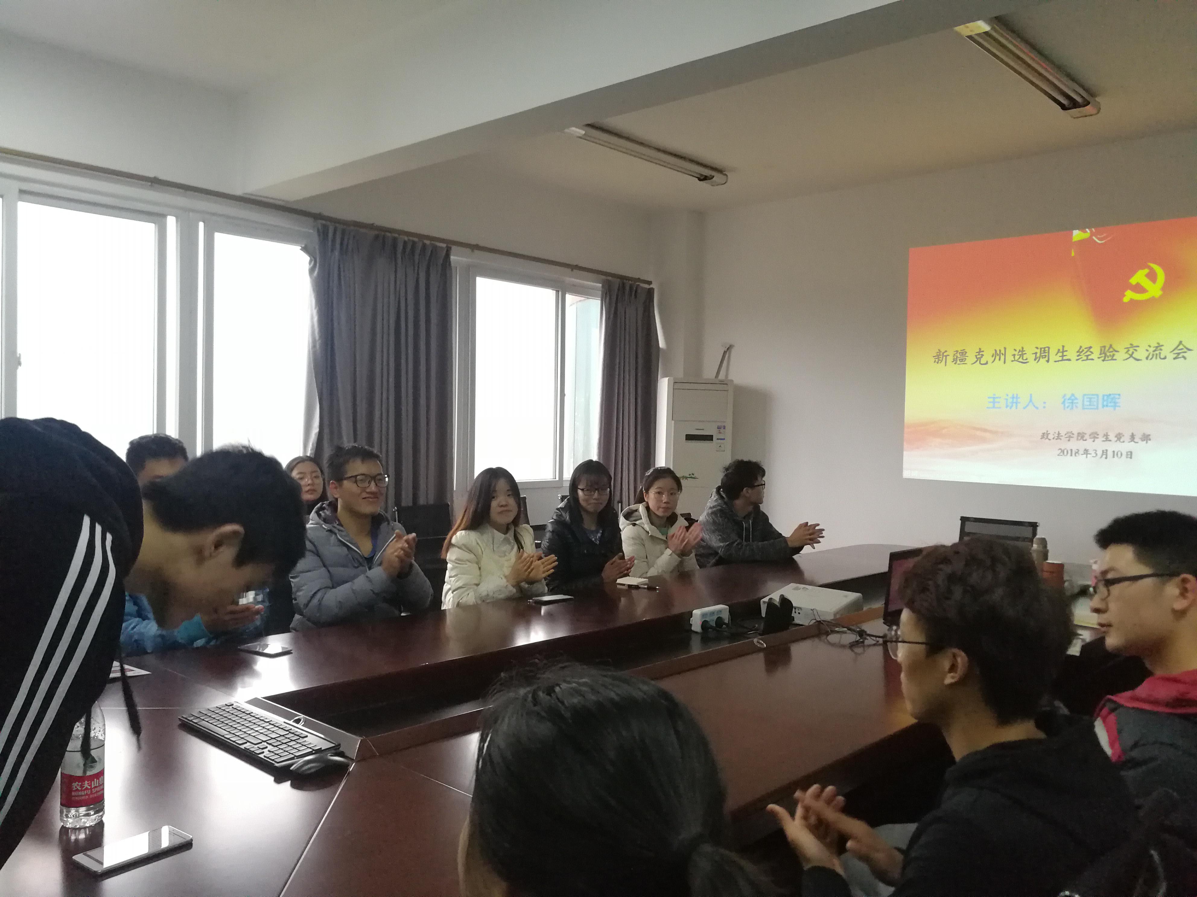 3月10日下午3时,学生党支部在611会议室举行了新疆克州选调生经验交流会,学生党支部书记张善喜及20余名学生党员、积极分子参会。