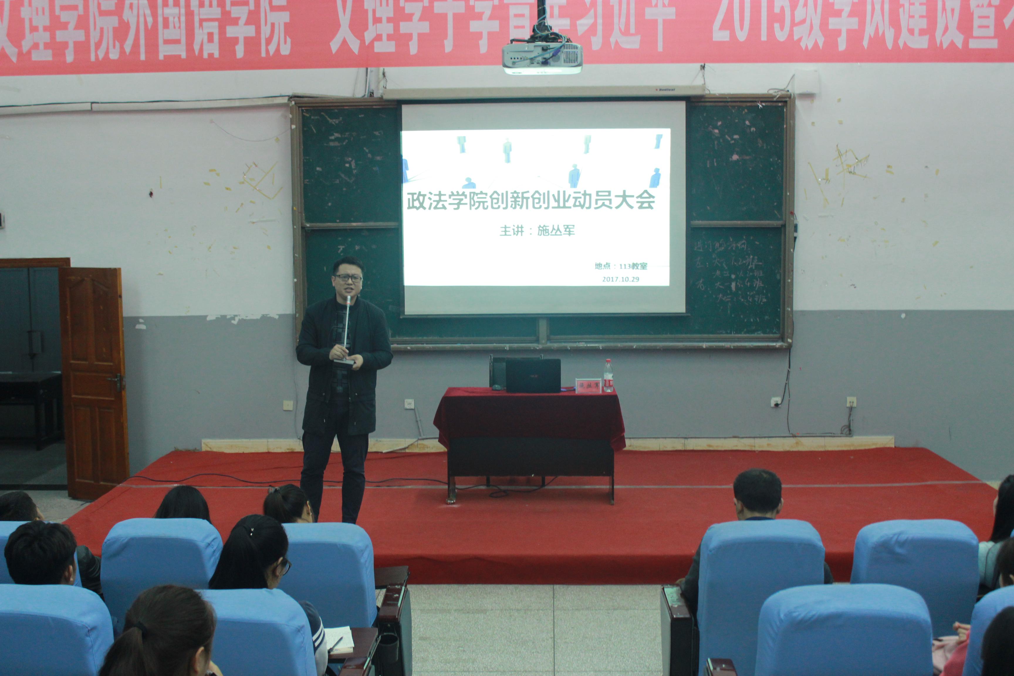 为进一步营造创新创业氛围,激发同学们的创新创业意识, 10月29日19时,taptap点点官方网站在一教楼113教室召开大学生创新创业动员大会。原数财学院10级校友、通川区启智培训学校执行校长、通川区青年企业家协会副会长施丛军应邀出席,党总支副书记张善喜、大一全体同学和大二入党积极分子参会。会议由辅导员刘丹主持。