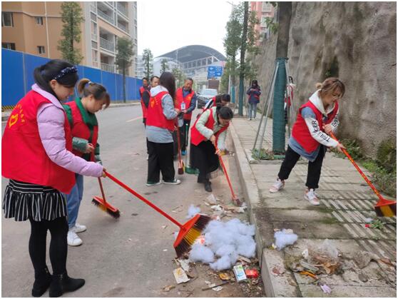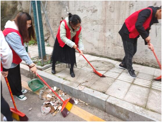 志愿者们统一身着红色志愿服到达活动地点,发现街道上垃圾遍布,枯枝落叶成堆,瞬间激发起了大家对环境的爱护之心,每个人迅速拿好清扫工具开始了清扫工作。他们分工合作,一部分人负责清扫沿街的垃圾,一部分人负责将垃圾装袋,共同协作,高效地开展着工作。志愿者们认真清扫,不怕苦、不怕累,当看到一些较大的垃圾时,志愿者们直接用手捡起,并放入垃圾袋中。最后,大家将分类打包好的垃圾放到了指定的地方进行处理。在大家的共同努力下,街道上的枯枝落叶、白色垃圾通通一扫而光,使得街道的面貌焕然一新。