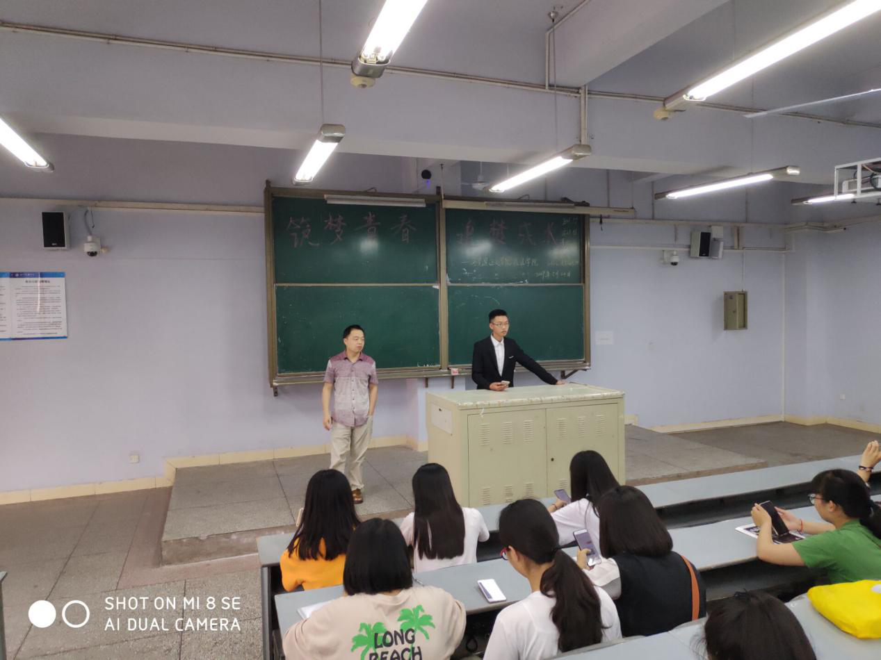 各班召开以“筑梦青春,追梦成长”为主题班会,学习学校的青年榜样王海鑫克服重重困难战胜疾病考研追梦的事迹,鼓励青年学生要树立人生理想,筑梦励志;要敢于战胜人生遇到的各种困难和挫折,勇于追梦;要矢志不渝,勤奋努力实现自己的梦想。