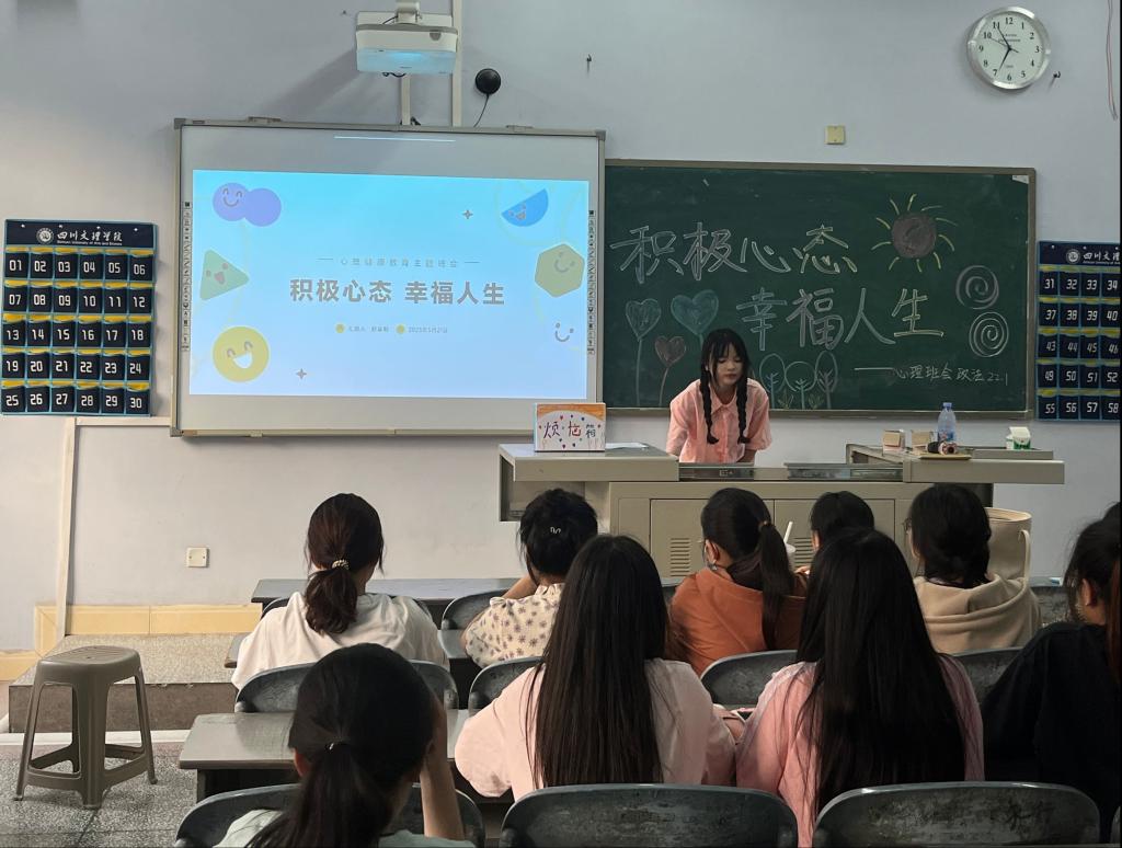 为深入学习贯彻习近平新时代中国特色社会主义思想,进一步落实全国教育大会、全国高校思想政治教育工作会议精神,广泛普及心理健康知识,有效提升学生心理健康意识,扎实推进心理育人工作,培育大学生自尊自信、理性平和、积极向上的良好心态,引导学生感受生活中的爱与幸福,以更积极、更自信的心态面对人生和未来。taptap点点于2023年5月28日开展了“积极心态 幸福人生”的主题心理班会,各班心理委员主持班会。