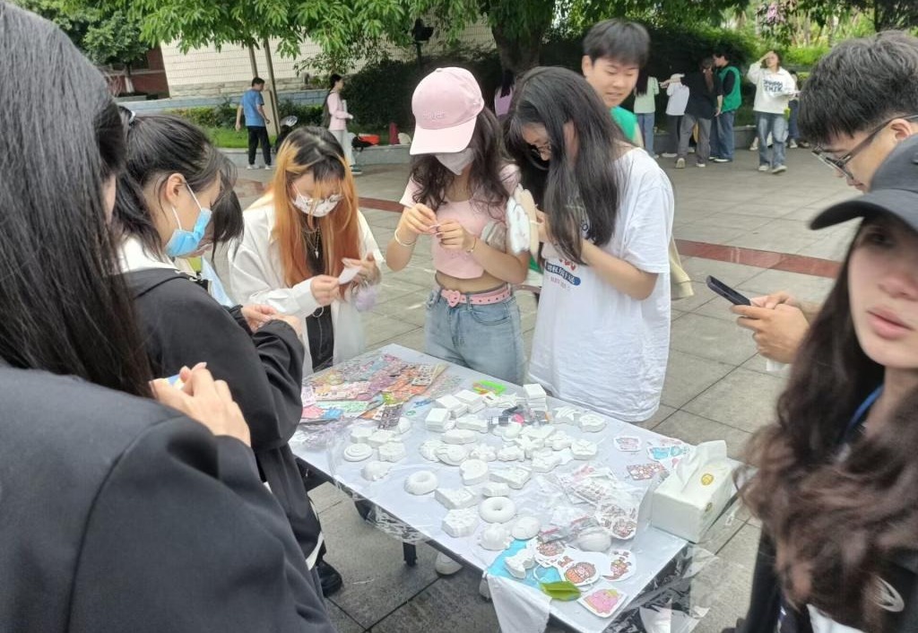 5月25日下午,taptap点点在音演广场开展心理健康体验活动。体验活动形式多样,设计了DIY手工体验活动与趣味问答游戏。DIY手工体验中,同学们能够放下学业压力和生活烦恼,专心投入到手工涂画和制作中,愉悦心情;趣味问答游戏,不仅有丰富的奖品,还涵盖了大量的心理健康知识,让同学们在游戏活动中了解心理健康知识,寓教于乐。