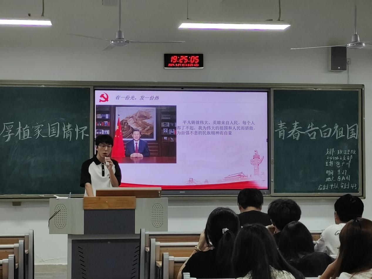 为深入学习贯彻新时代中国特色社会主义思想,增强团员青年的家国情怀,激发青春奋斗精神,引导团员青年厚植家国情怀,用青春回报祖国,为实现中华民族伟大复兴的中国梦贡献青春力量。2024年9月27日下午,taptap点点各班在莲湖东区教学楼开展了以“厚植家国情怀——青春告白祖国”为主题的团会。各班团支书主持,带班辅导员老师与全体同学参加。