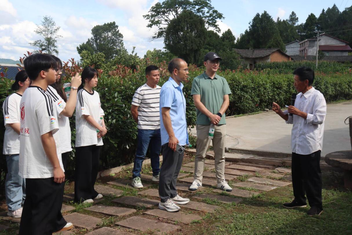 活动第二站是嘉龙村青凤寨烈士陵园。陵园内,苍松掩映的墓碑庄严肃穆,耄耋之年的老党员牟伦德轻抚墓碑,介绍了自己扎根乡土的奋斗岁月,讲述了该村红军牟现图同志“刀伤47处、宁死不变节”的英勇事迹,以及牟现图之子牟怀伦“万里长征有为,抗日为国捐躯”的感人故事。一个个“零距离”的鲜活革命故事,让同学们跨越时空,真切感受到信仰的磅礴力量与先辈们的赤诚初心。