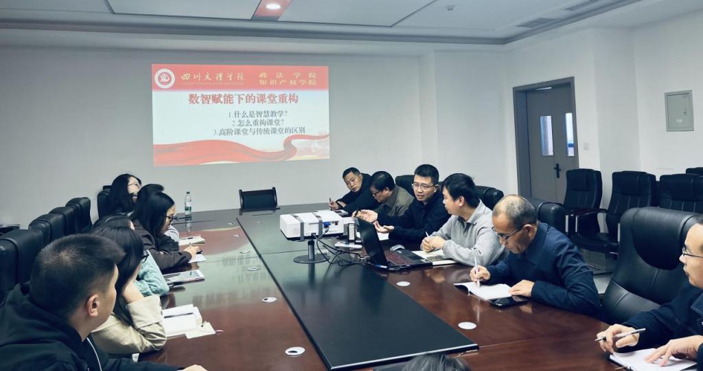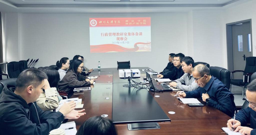 10月29日下午,行政管理教研室于东区C310会议室举行以“数智赋能下的课堂重构”为主题的集体备课观摩会。副院长(主持工作)何霖、党委书记张皓、副书记刘良训、副院长张善喜及教研室全体教师参会。本次教研活动以《市政管理学》《公共管理学》《申论》《公文写作》等智慧课程建设为切口,聚焦“什么是智慧教学?”“怎么重构课堂?”“高阶课堂与传统课堂的区别?”三大议题,展开沉浸式研讨。