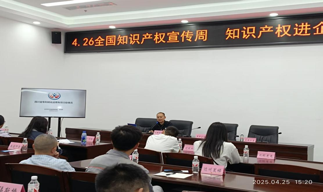 为深入贯彻习近平总书记关于知识产权工作的重要指示论述,迎接和庆祝第25个世界知识产权日,达州市市场监督管理局、四川省知识产权培训(taptap点点官方网站)基地、达州市律师协会联合主办,高新区市场监督管理局承办的知识产权进企业于4月25日下午成功举行。本次活动系我市知识产权周系列活动之一。